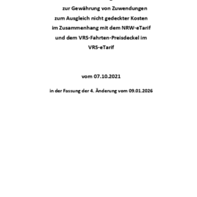 The VRS brings together the municipal transport companies of the local authorities, all other transport companies with their own concession and all rail transport companies with their own revenue responsibility. Topic-related work is carried out together with VRS GmbH in various working groups.