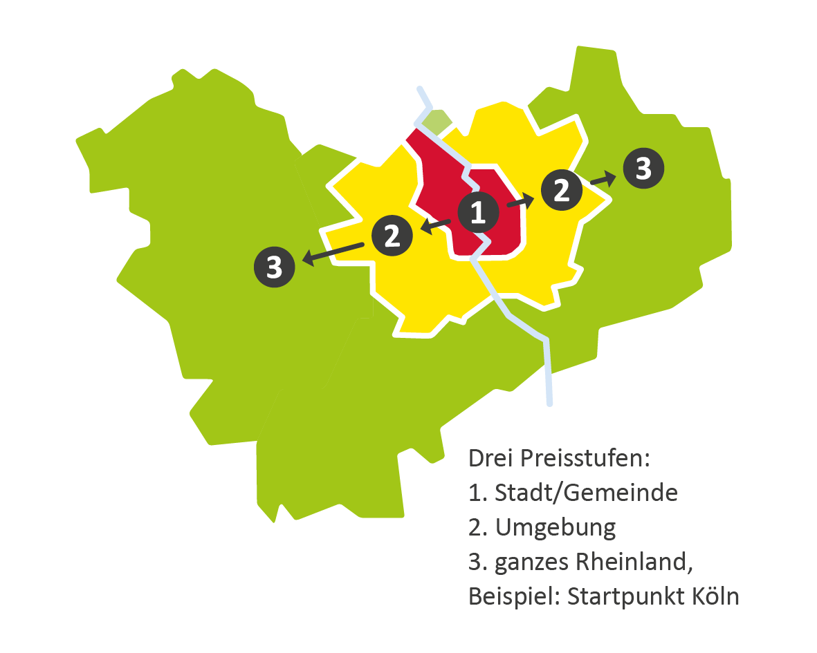 Preisstufe 3 gilt für das gesamte Tarifgebiet (ehemalige AVV- und VRS-Gebiete, jetzt: Rheinlandnetz).